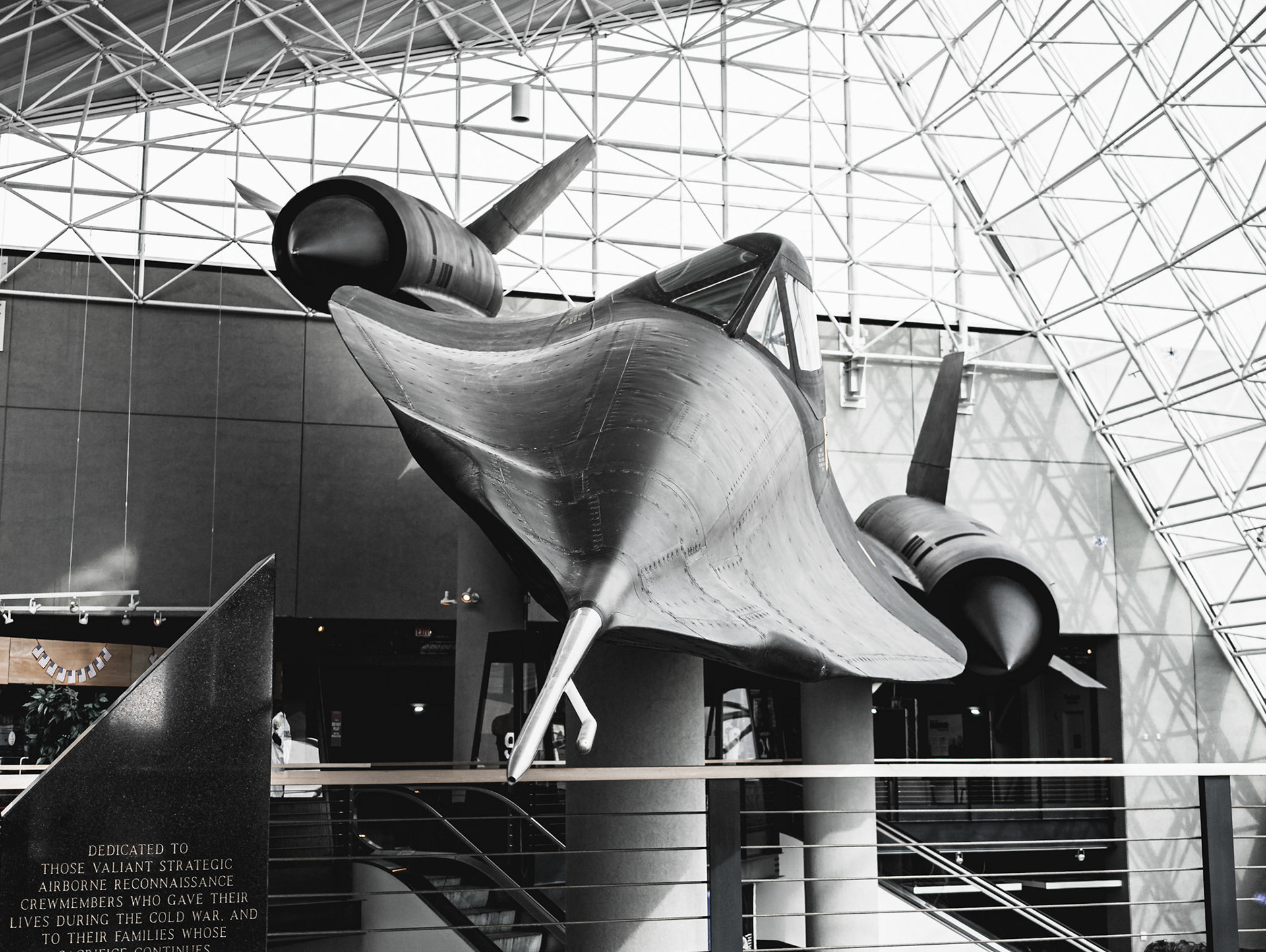 Everything on this airplane was designed with a specific purpose. See the two pointed cones protruding from the engines? Those were essential to the operation of the Blackbird because they slowed down the flow of hypersonic air to allow the engines to cool down, while also contributing to more than half of the engine's thrust!