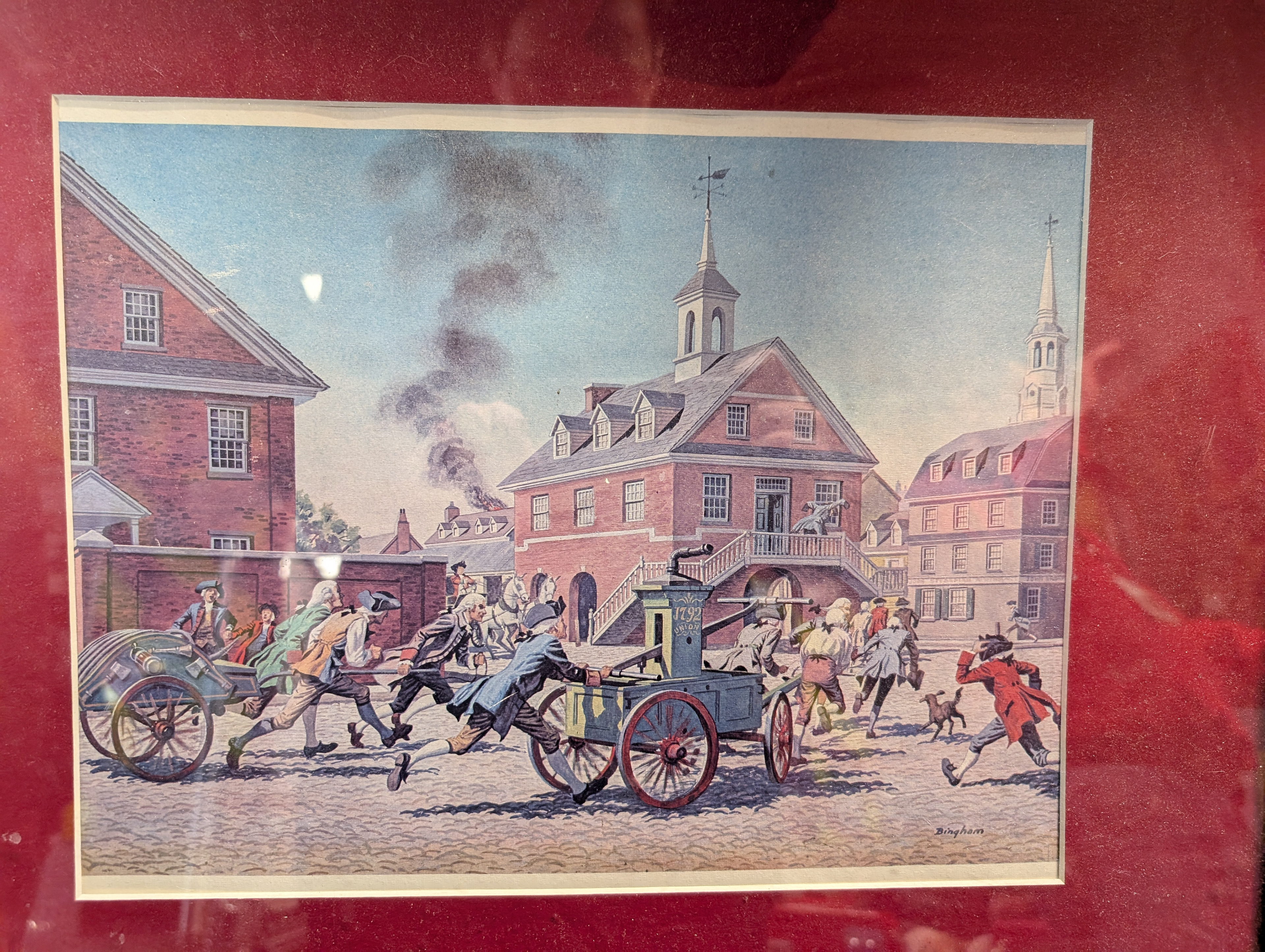 In colonial Boston, every household kept two fire buckets ready in case of emergency. Compared to those simple buckets, The Thayer was cutting-edge technology. Firefighters would pull it by hand to the scene, fill it with water from buckets, and operate a manual pump to send water onto the flames.